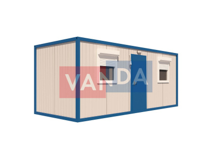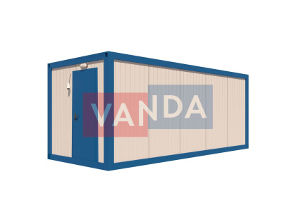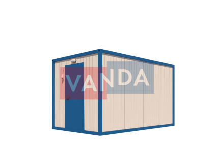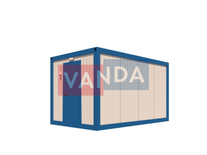Данный контейнер не требует обустройства тяжеловесного фундамента, поскольку постройка легкая и устойчивая. Данный блок-контейнер может быть выполнен абсолютно любого размера и формы по эскизу заказчика.Контейнер состоит из металлического сварного основания. Стены изготовлены из сэндвич-панелей с прокладкой утеплителя. Крыша покрыта крашенным холоднокатаным металлом 1,2 мм. Помещение обустроено пароизоляцией при помощи технической пленки, которая проложена на полу и потолке. Внутренняя облицовка потолка выполнена из ПВХ-панелей, пол – из шпунтованной доски. Вход в помещение оборудован запирающейся металлической дверью.