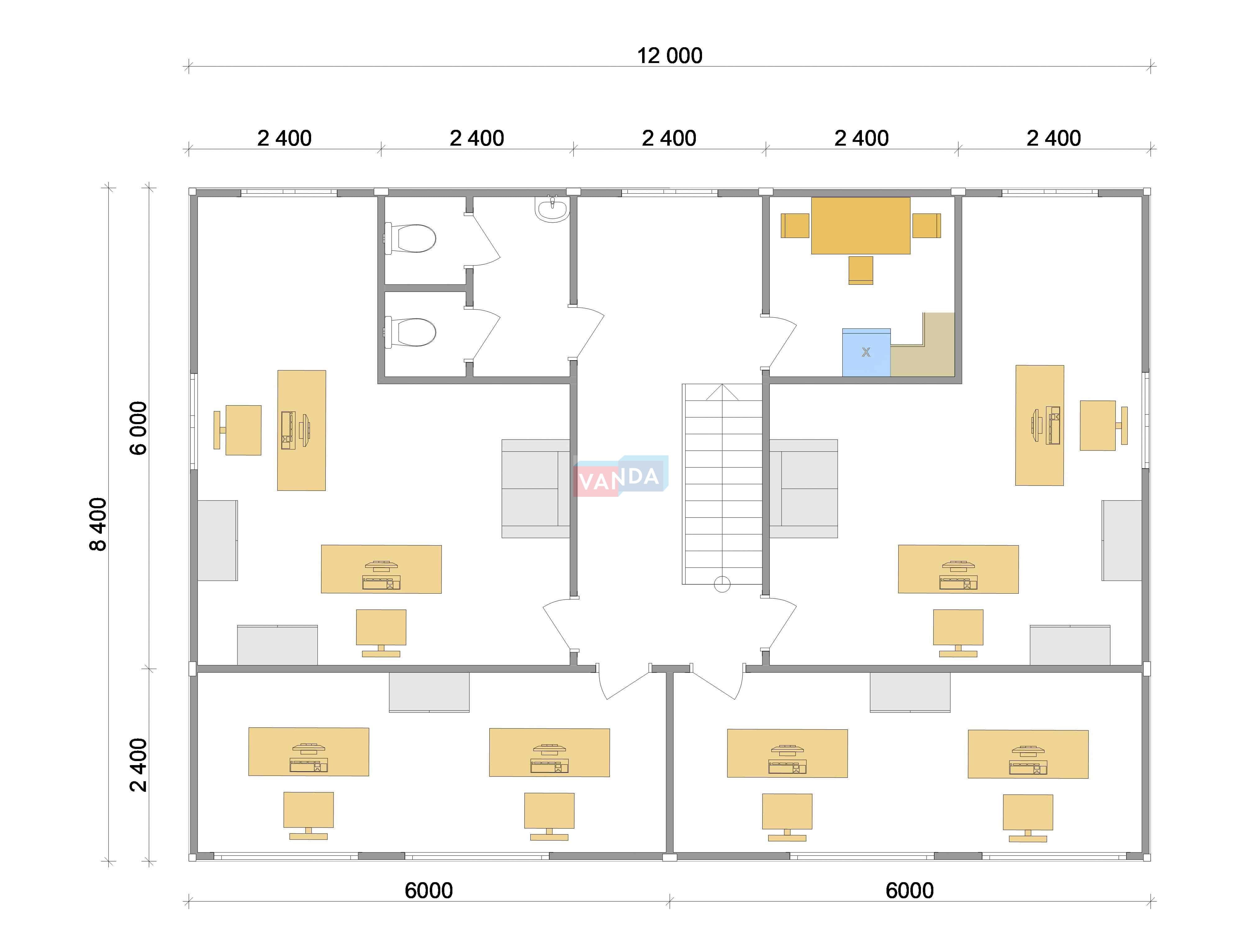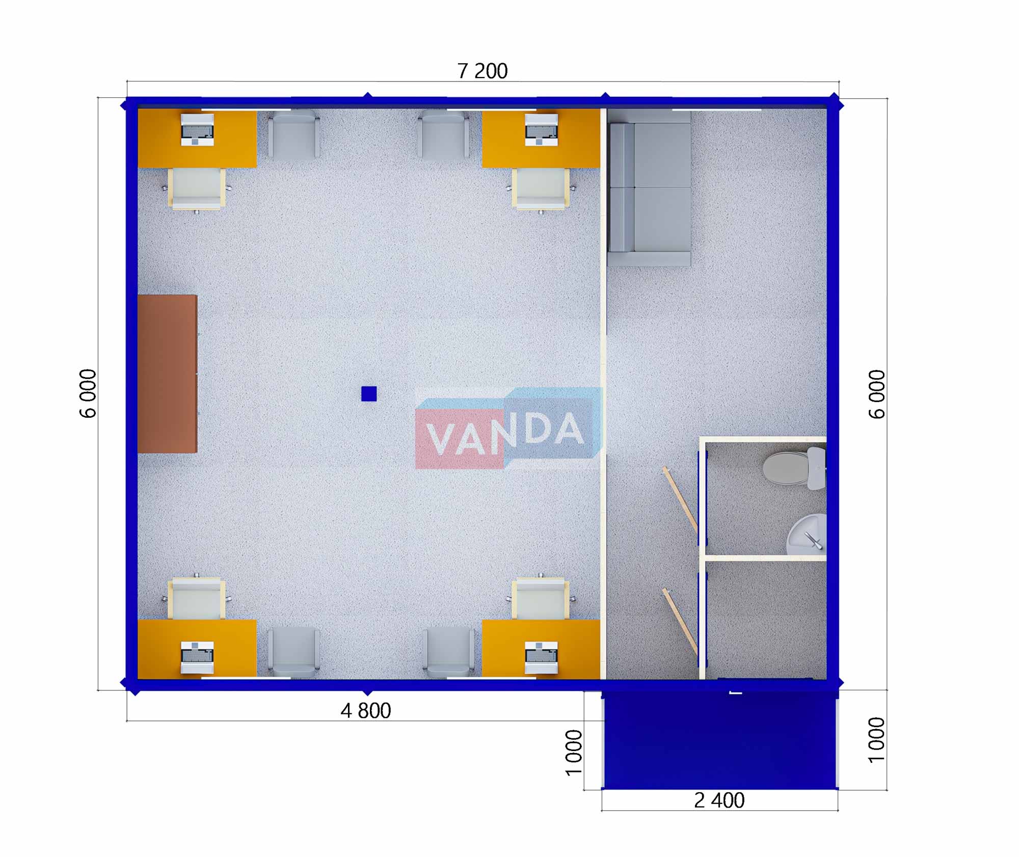 Модульная бытовка с плоской крышей 7.2x6.0 7.2x6.0 43.2 OSB 9 мм. Оцинкованный профлист 650 000 р. Уточняйте у менеджера