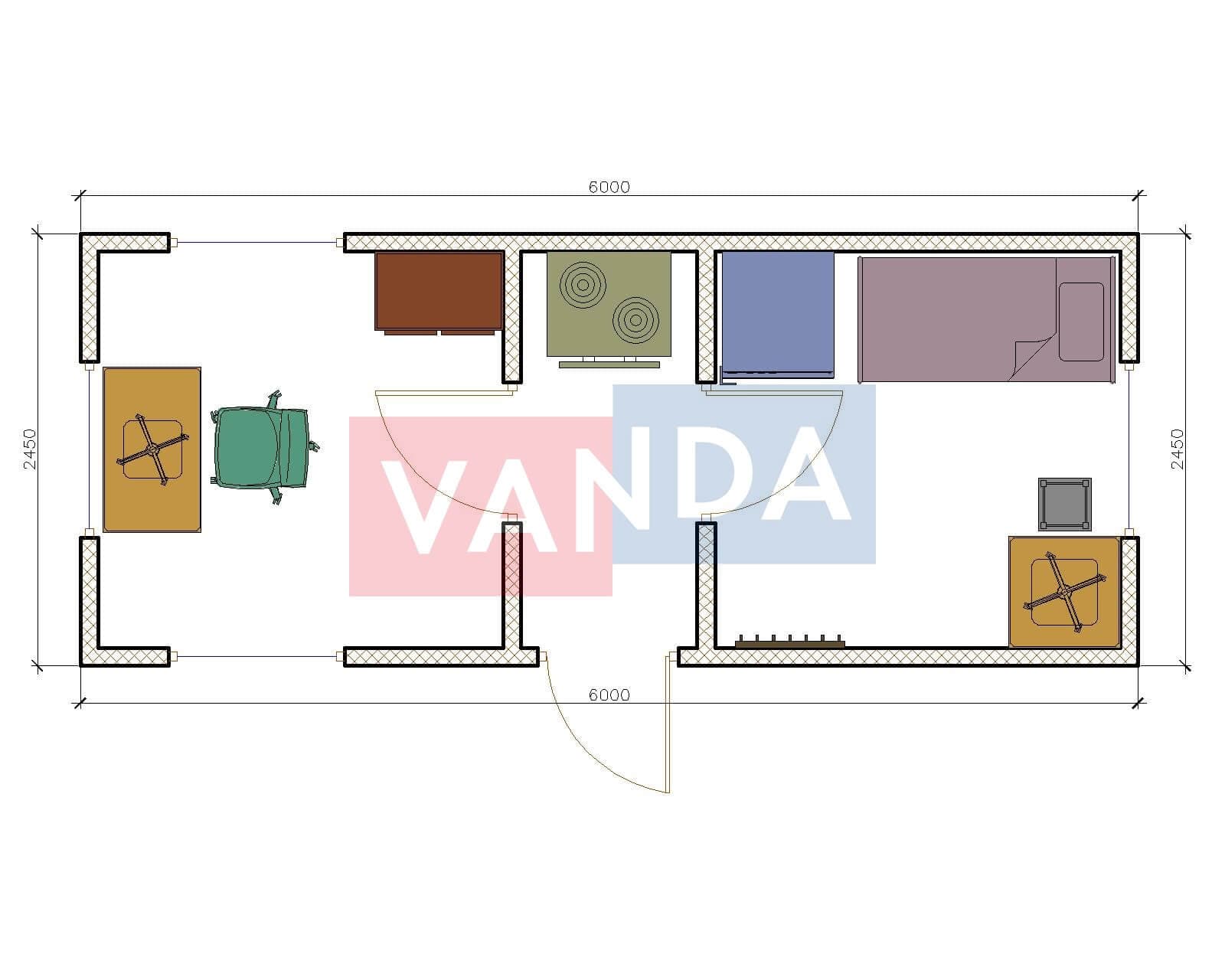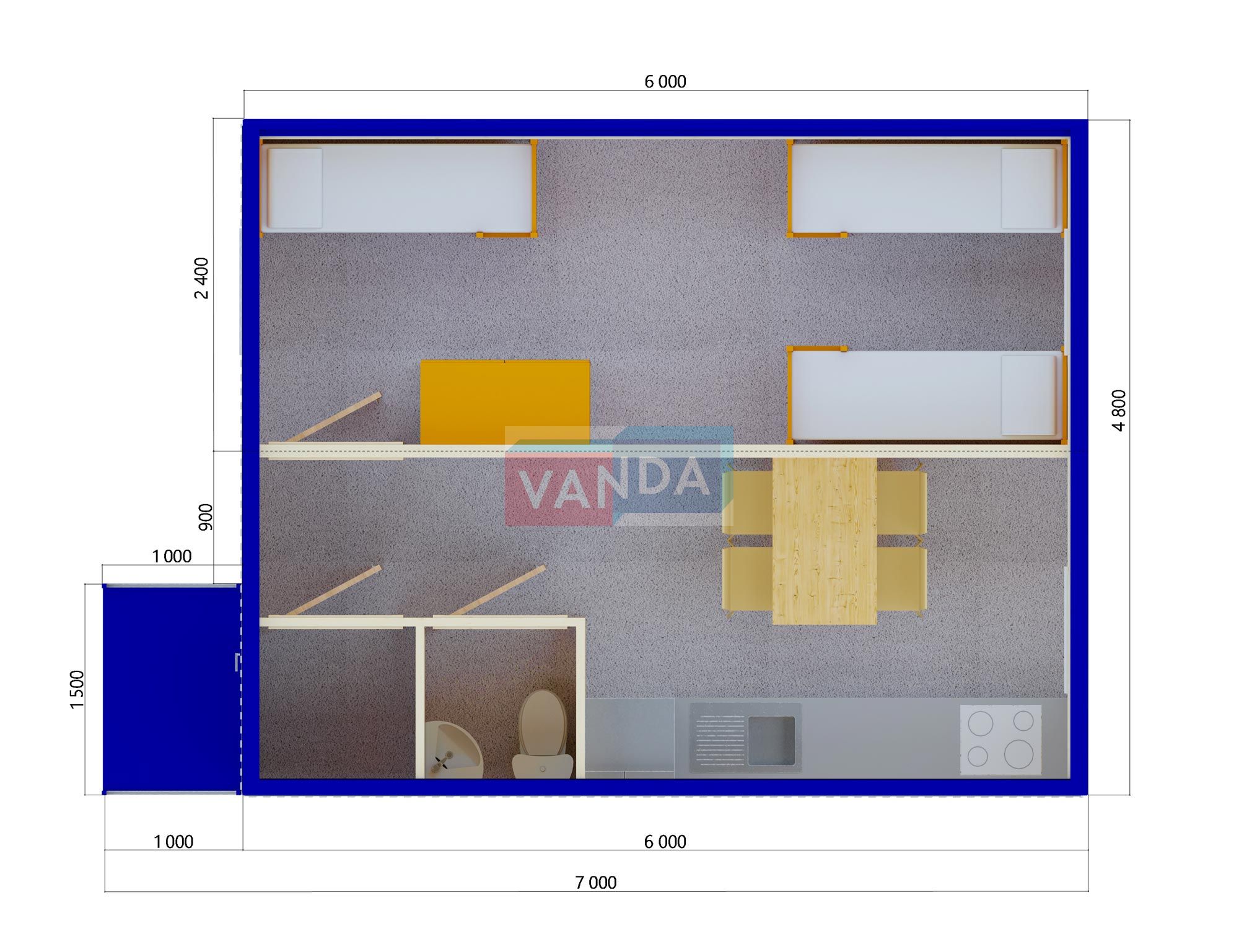 Модульная бытовка с плоской крышей 4.8х6.0 4.8х6.0 28.8 OSB 9 мм. Оцинкованный профлист 500 000 р. Уточняйте у менеджера