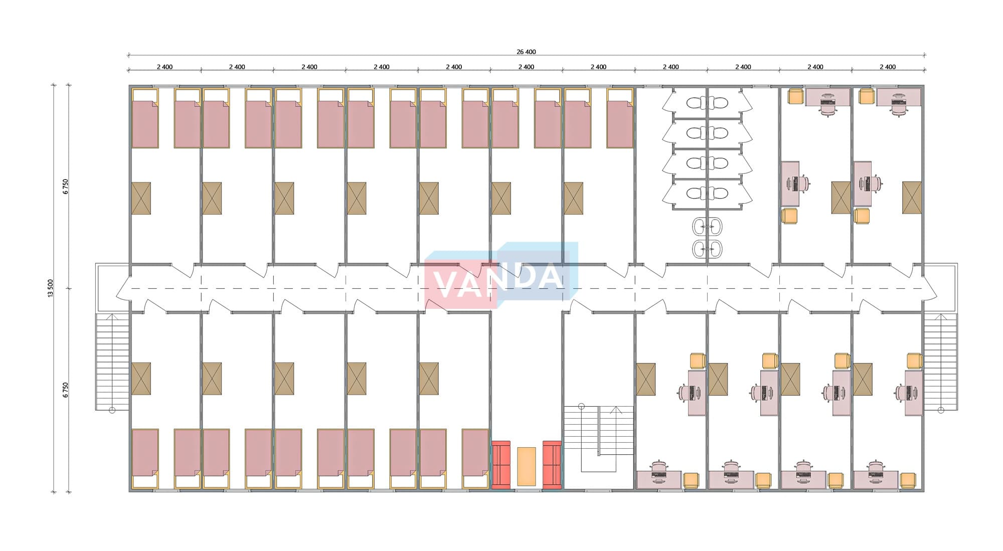 Проект вахтового посёлка 14.0х57,6 14x57.6 806.4 OSB 9 мм. Оцинкованный профлист 20 700 000 р. Уточняйте у менеджера